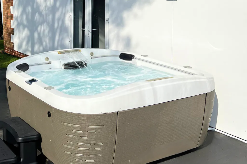 To the side, enjoy a private, fenced decking area featuring your own exclusive hot tub for ultimate relaxation.